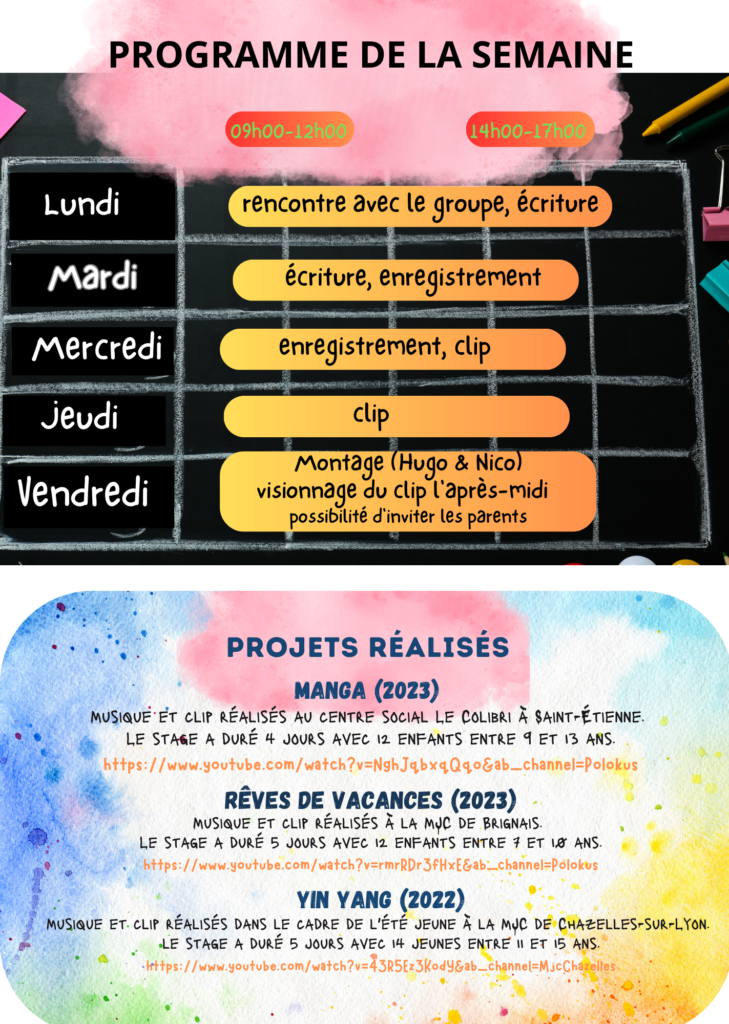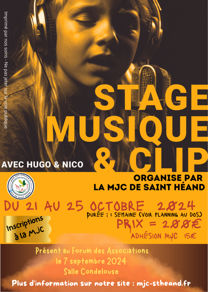 Comme annoncé sur notre plaquette la MJC propose aux enfants et adolescents une semaine d’activité autour de la musique et des clips vidéo.